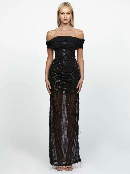 BARIANO- Effy Off Shoulder Black Maxi Dress (AU 8)