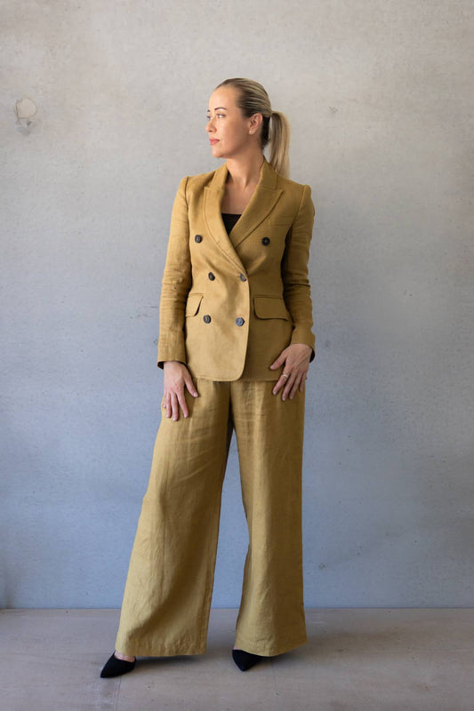 ZIMMERMANN SUIT - Mustard Linen Double Breasted Suit (AU 8/10)