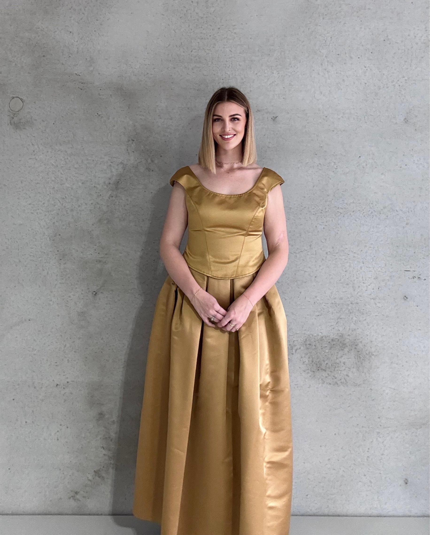 Barbara Wilson 2 Piece Top & Skirt Set in Gold - Size 10 - 12