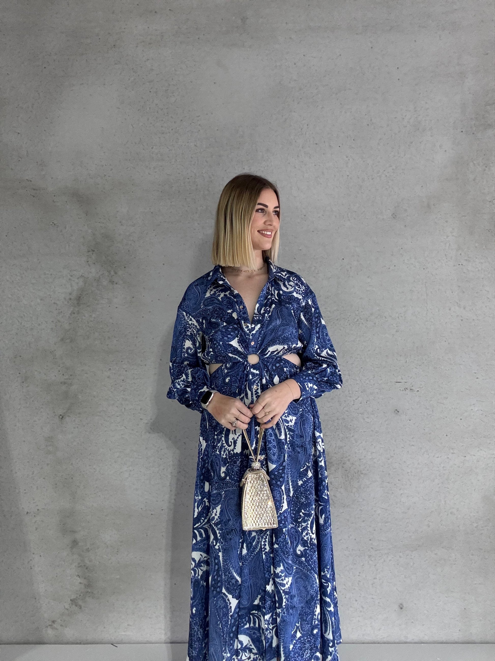 Icy paisley prints and cool cut outs. Introducing our Casablanca Dress - featuring elasticated waist with side cut outs and set in long sleeves with fixed button cuffs. Pair back with our Tina Heels and Eden Earrings to complete your look.